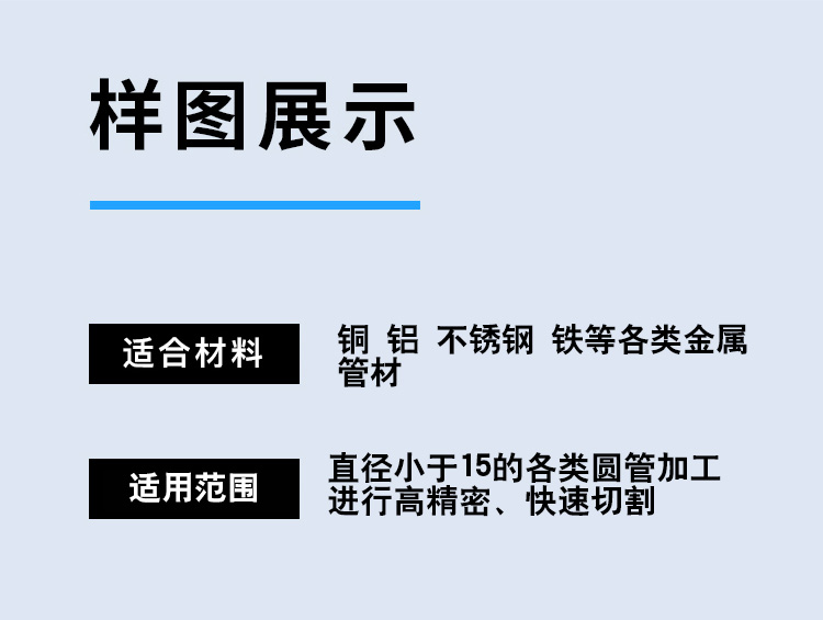 連續加工:圓管直徑≤25mm,長度≤3米 單件加工:直徑≤25,長度≤300mm圓形產品(需配夾具) |